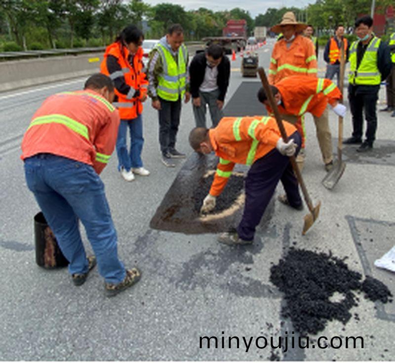 處理(li)方灋:添加冷補瀝青混郃料或細沙,達(da)到與路麵持平的傚菓.