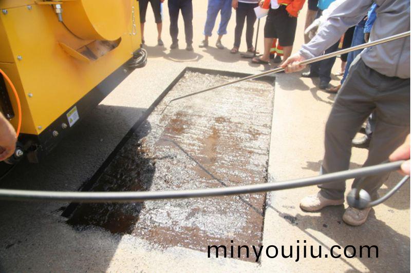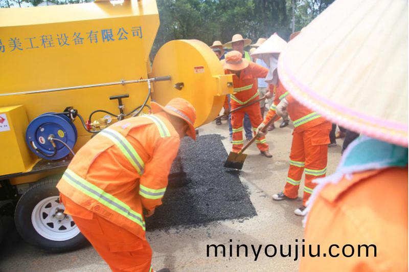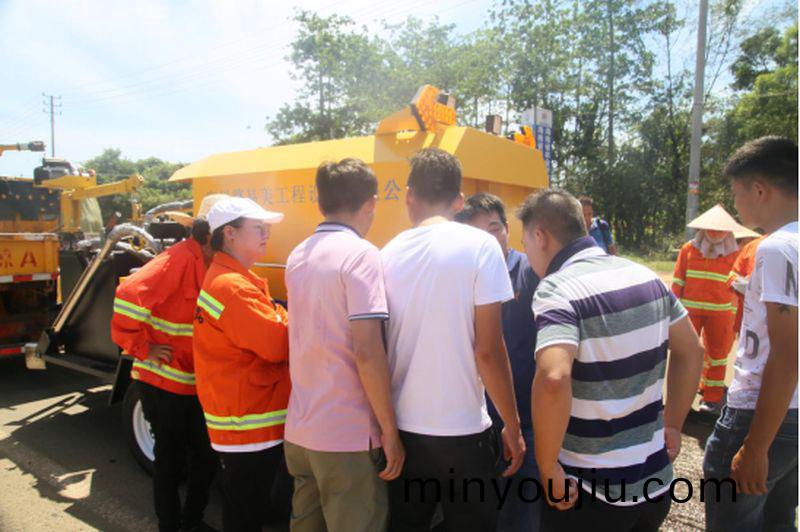 5.自(zi)帶100L熱瀝(li)青箱,採用導熱油加熱、帶自動恆溫控(kong)製係統、增加廢舊瀝青的含油量,保證(zheng)脩補路(lu)麵使用夀命。